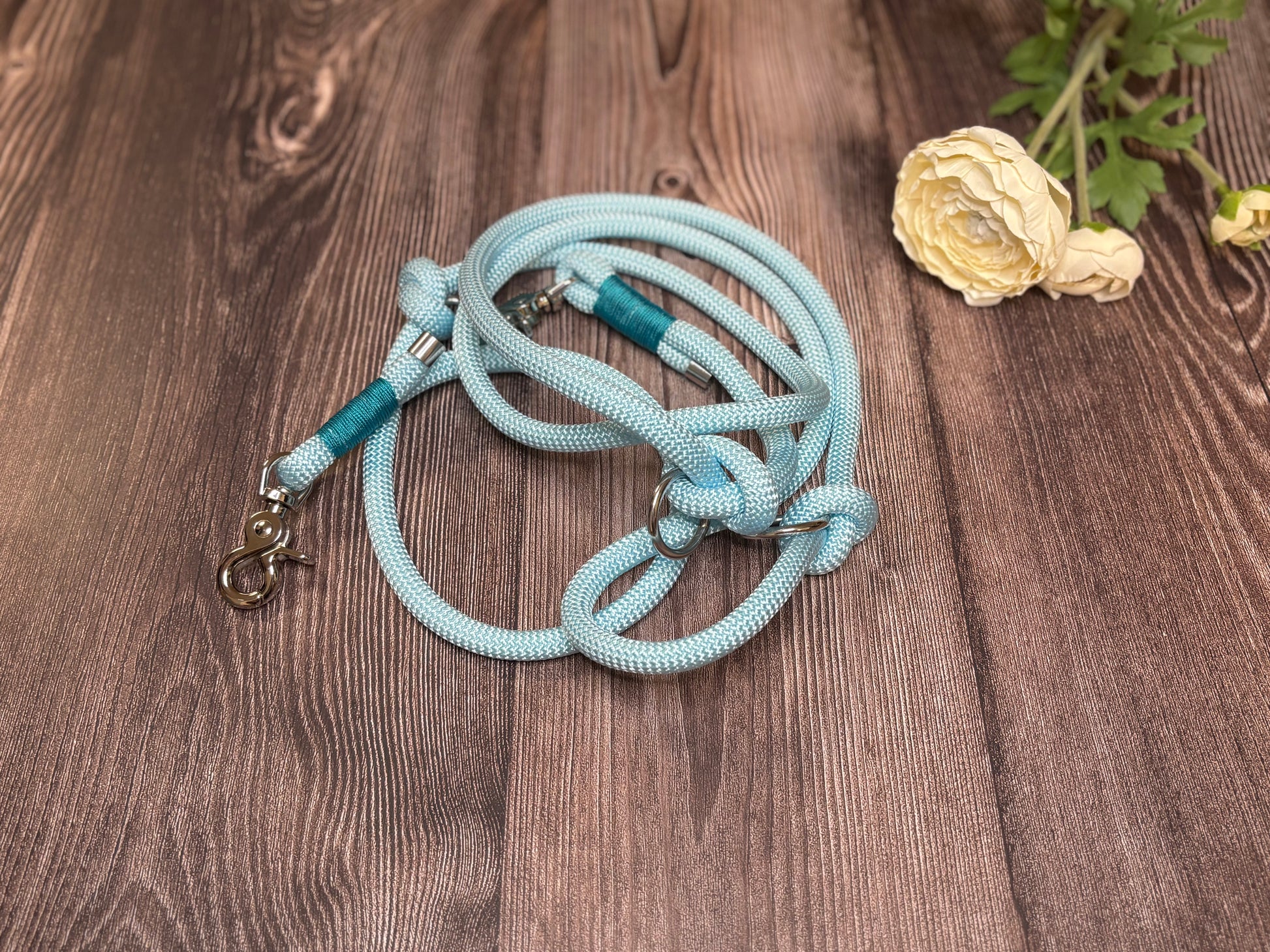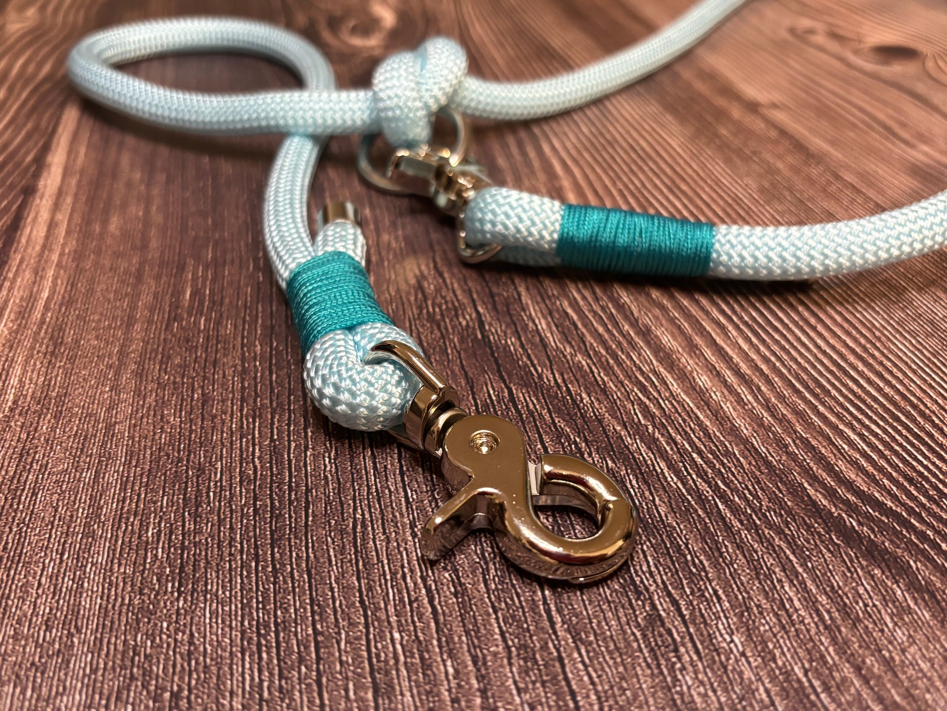 Unsere 3-fach verstellbare Tauleine vereint modernes Design in frischer Tau-Optik mit höchster Funktionalität. Sie bietet dir maximale Flexibilität und Kontrolle bei jedem Spaziergang, ganz ohne Stress. Dank der einfachen Längenverstellung lässt sich die Leine im Handumdrehen an jede Situation anpassen.