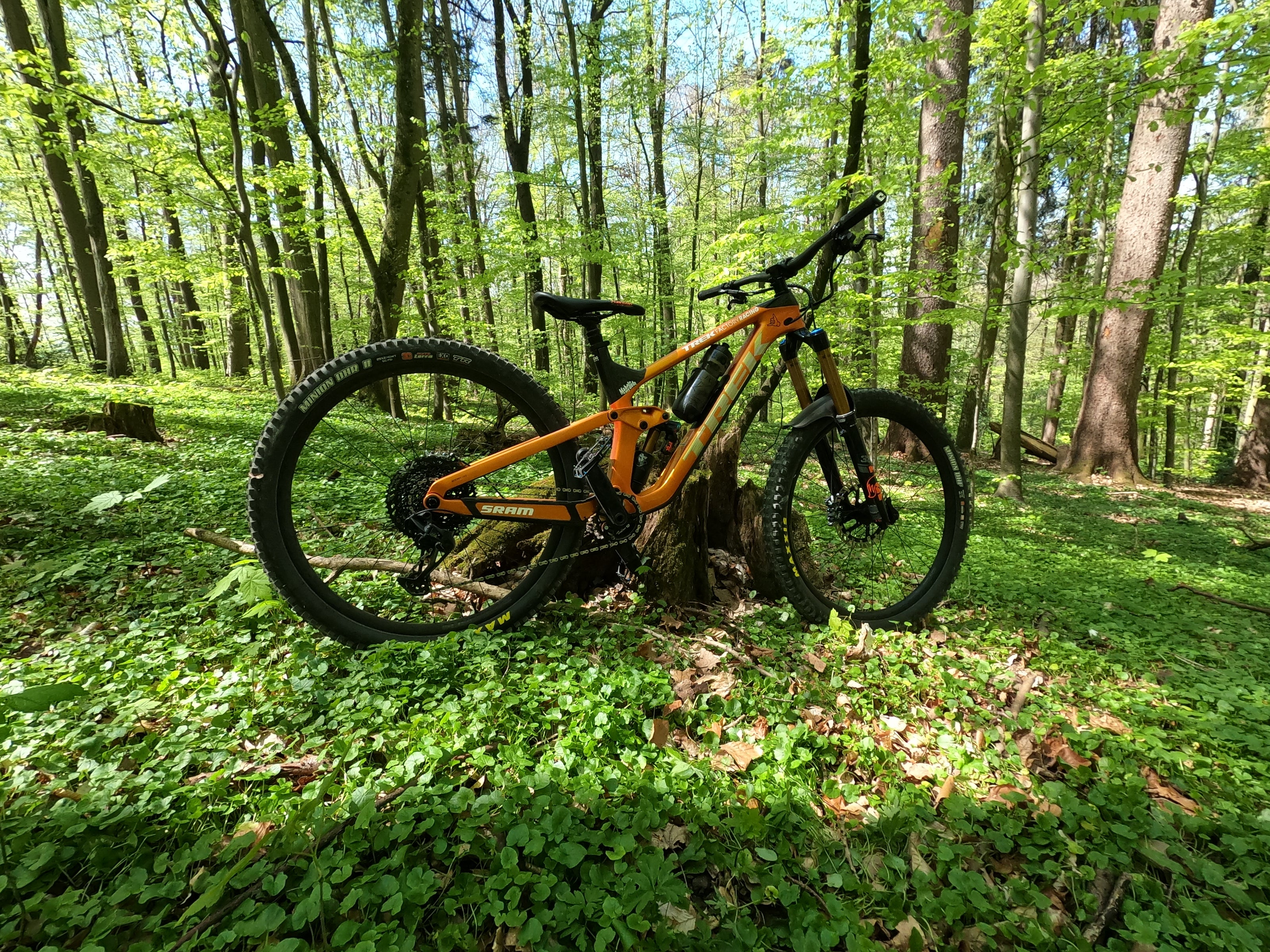 Das ist das Slash von unserem Team Mate Ricardo in der Farbe Factory Orange/Carbon Smoke mit unseren Weißen Sticker.